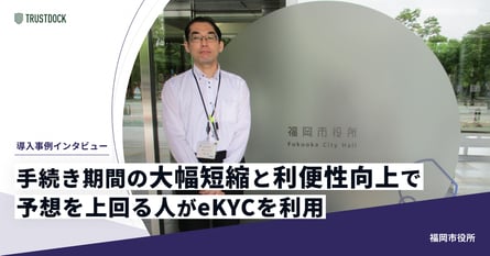 なお、TRUSTDOCKの公的個人認証サービスを使った手法は、現在多くの行政領域で活用されています。例えば福岡市では、公共施設案内・予約システムにおいて利用者登録申請のオンライン化に向けてTRUSTDOCKのシステムが導入され、新規登録の期間が大幅に短縮され(1カ月程度→1週間程度)、また利便性の向上によって登録申請数も大幅に増加(200件/月→800件/月)しています。