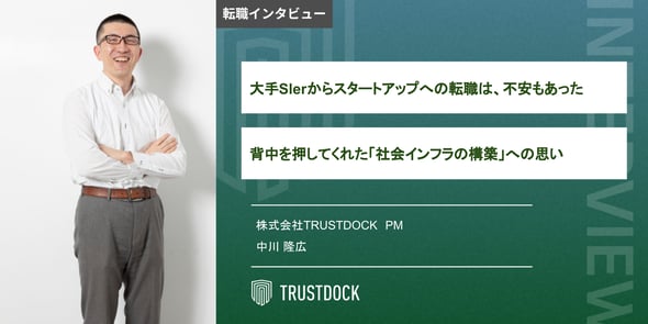 PM担当として、大手SIerでのシステムエンジニアの経験や、ベンチャー企業で研究機関や製薬企業の研究者のIT支援の経験を持った中川隆広がTRUSTDOCKにJOINしました。