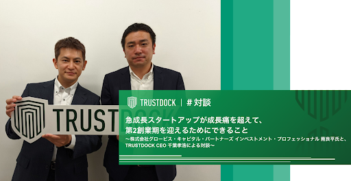 急成長スタートアップが成長痛を超えて、 第2創業期を迎えるためにできること 〜株式会社グロービス・キャピタル・パートナーズ インベストメント・プロフェッショナル 南良平氏と、TRUSTDOCK CEO 千葉孝浩による対談〜