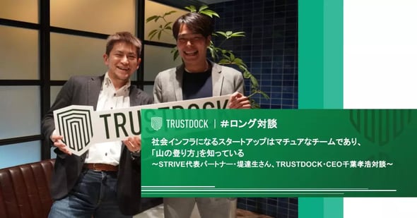 社会インフラになるスタートアップはマチュアなチームであり、「山の登り方」を知っている〜STRIVE代表パートナー・堤達生さん、TRUSTDOCK・CEO千葉孝浩対談〜