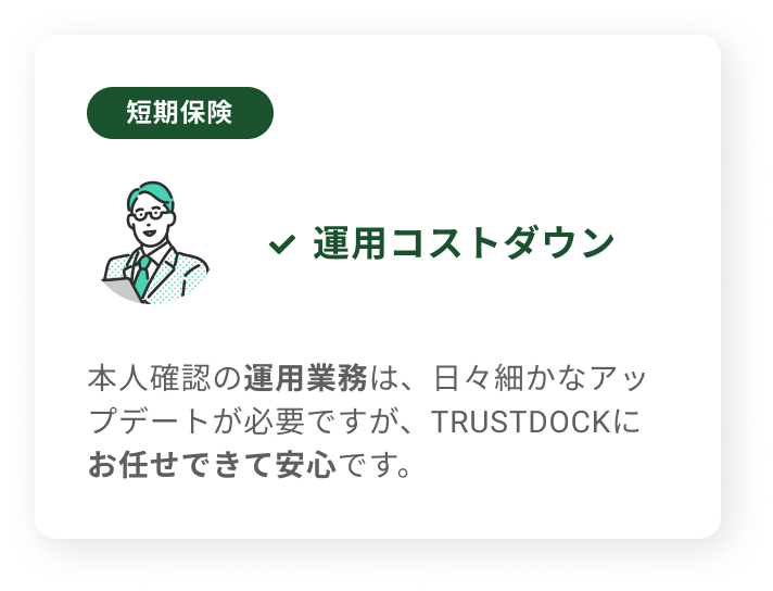 ペーパーレス化や本人確認のアウトソースにより、人件費や管理費の削減につながります。